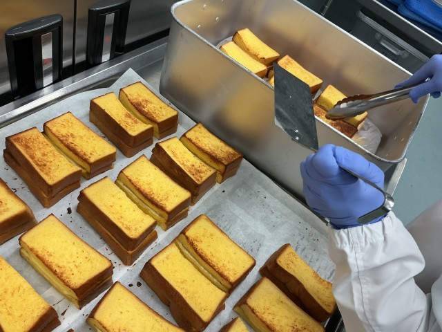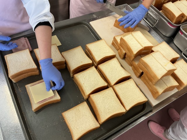 モンティクリストはカナダの料理です。食パンにハムとチーズを挟み、卵と牛乳、砂糖を混ぜ合わせたフレンチトーストの液にひたした後、オーブンでこんがりと焼きます。しっとりとして甘みのあるパンと、ハムとチーズの塩気がよく合い美味しく食べられます。とてもボリュームがありましたが、子どもたちはよく食べていました。