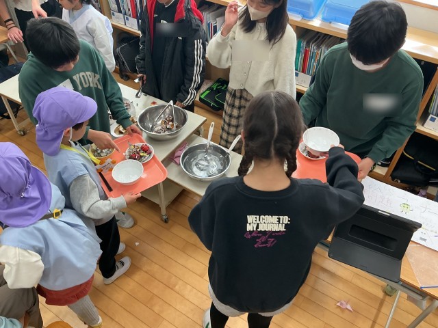 企画した5年生も、招待された幼稚園児もあちこちで笑顔が見られる交流会になりました。幼稚園の子たち、少しは心配事が減ったでしょうか?
