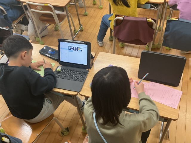 5年生は、出前授業でこちらも環境についての出前授業。東京ガスの方をゲストティーチャーに地球規模での環境問題について考えていました。確かに夏の猛暑が普通になりつつあったり雨が降れば豪雨、冬は雨が降らずダムの貯水率も例年より随分と低い値。水産物や農産物もこれまでの場所では穫れなくなりつつあります。そんな地球環境について考える大切な時間となりました。