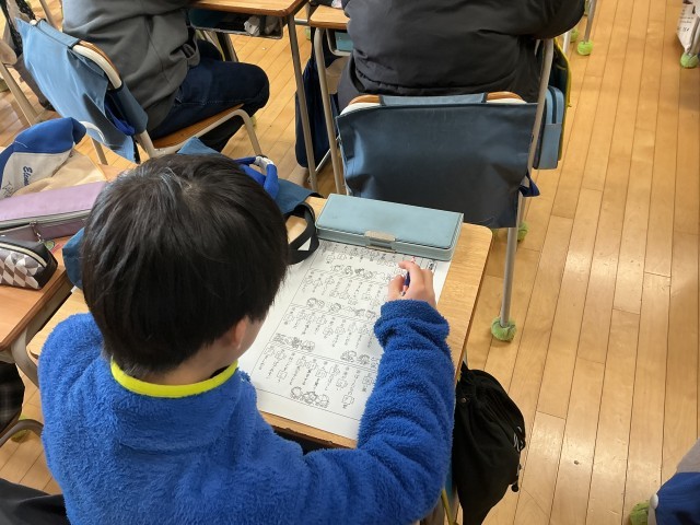 今日5年生は、音楽鑑賞教室でこれから昭和女子大学に出かけます・・・・が、その前に寸暇を惜しんで学習・・・えらい!