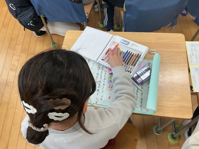 2年生は、生活科の時間。自分の成長してきた様子をまとめて伝えていきます。