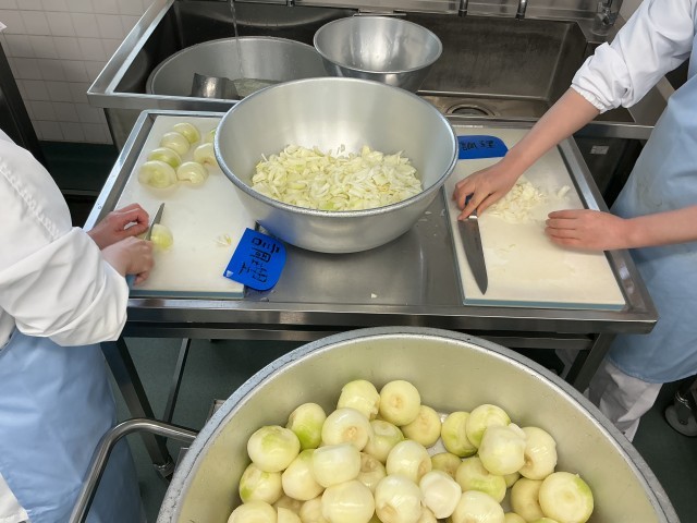 今日のコーンシチューの玉ねぎ、にんじん、じゃがいもは有機栽培で育てられたものを使っています。また、今日のいちごジャムは給食室で作りました。ミキサーにかけてなめらかにしたいちごを砂糖と煮込み、レモン汁を加えて作ります。とろみ付けに少しコーンスターチを入れて仕上げました。