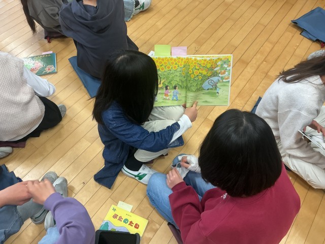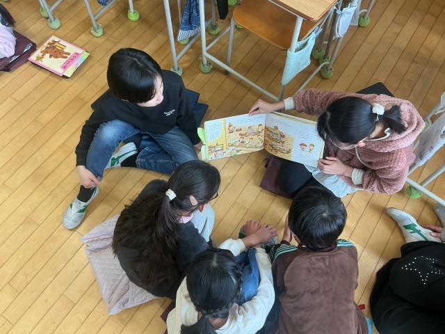 そして、グループによって2年生と5年生の教室に分かれての読み聞かせ。5年生は、練習の成果を生かし、穏やかにそして優しく2年生に接しながら、楽しんでもらえるようにと一生懸命読み聞かせをしていました。