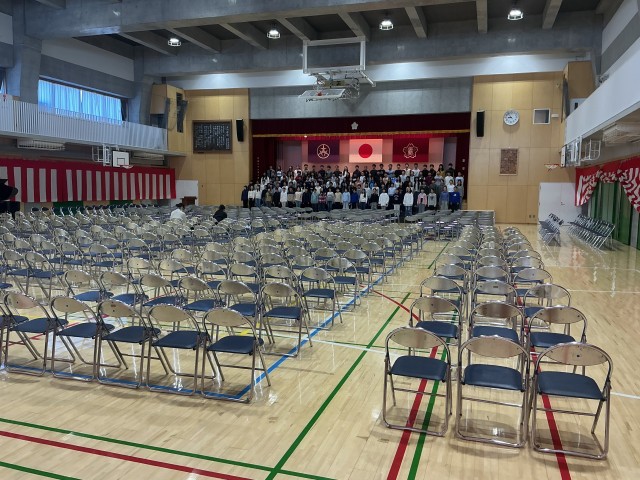 1時間目、少し張りつめた空気の中、6年生が卒業式の呼びかけの練習をしました。卒業証書授与後、6年生がこれまでの学校生活を振り返り、これからの決意を伝えるものです。卒業式は、6年生にとって6年間の集大成。しっかりとした式にしていきたいと思いますが、だからといっていくらでも練習に時間をかけられるわけではありません。各学級では練習の時間もありましたが、学年全体で合わせるのは今日がはじめて。しかし、はじめてとは思えないほどの出来栄えでした。まず、それぞれの声の大きさがとてもよい。そして、全員で合わせていう言葉も初めの数回はさすがにバラバラという場面もありましたが、何回か練習するうちにピタッと合わせてきました。素晴らしい!ちょっと惜しかったところは、言い方が応援団風に語尾を伸ばし気味になってしまっているところ。注文としては「声は大きく、しっとりと」というちょっと無茶振りですが、きっと6年生ならそこに近付けてくれるてしょう。期待しています。