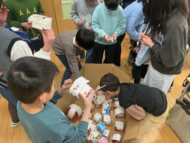 4年生は今年1年、総合的な学習の時間を中心にSDGsにこだわった取り組みをしてきました。運動会での野菜の皮などで染めた手拭いを使って踊ったことや、学習発表会でのSDGsの取り組みの発表などもありました。そして、これまで取り組んできたことを他学年にも知ってもらおうと『SDGsに「ともに」取り組むために』ということで、ちょっとしたイベントを行いました。これまで作ってきたものなどを他学年の子どもたちにも体験してもらおうというものです。