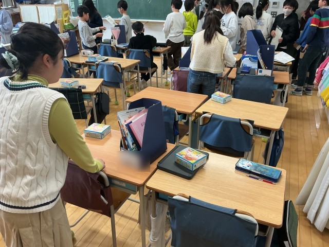 このほか、校庭では2年生が鬼ごっこをして学級で楽しんでいたり、教室ではお楽しみ会に向けて飾り付けをしていたり。6年生の教室でも「フェス」と銘打ってお楽しみの時間。体育館では、1年生が入学式の新1年生に向けてのアトラクションの練習・・・と校内のあちらこちらで年度末が近づいていることを感じる光景が見られました。