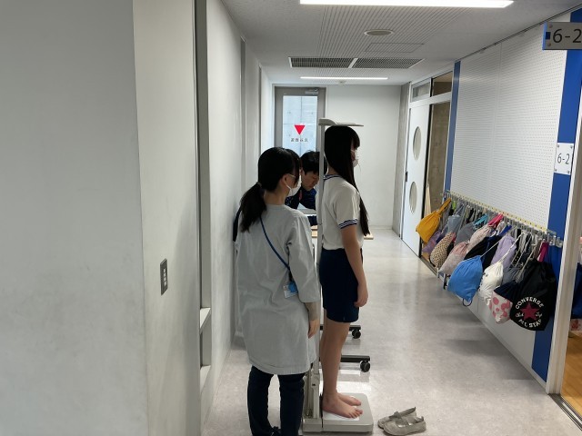 まずは、早くも始まった身体測定。今は昔と違って、身長と体重が一度に測れてしまいます。そして子どもたちの関心は、「自分の身長がどれくらい伸びたのか」。とても喜んでいる子がいるかと思えば、ちょっと残念そうな顔の子どもも。順次全クラス計測をしていきます。