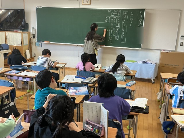 そしてこちらのクラスでは、国語の学習。保護者の皆さんの中にも「白いぼうし」を子どものときに学習したよという方多いのではないでしょうか。運転手の松井さんはどんな人なのか、そしてそう思った根拠は何なのかについて話し合っていました。