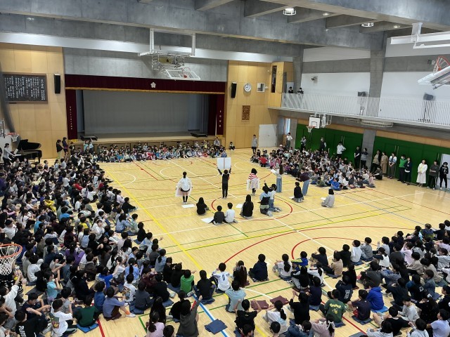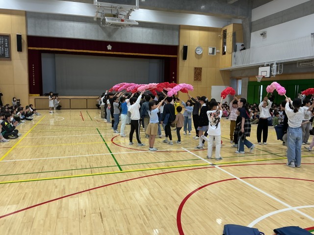 会の冒頭、1年生はいろいろとお手伝いをしてくれている6年生と一緒に花のアーチをくぐって入場しました。5年生のじゃんけん大会や6年生のクイズ大会で盛り上がり、1年生も楽しめたようでした。これで1年生も多聞小の一員として正式に仲間入りです。