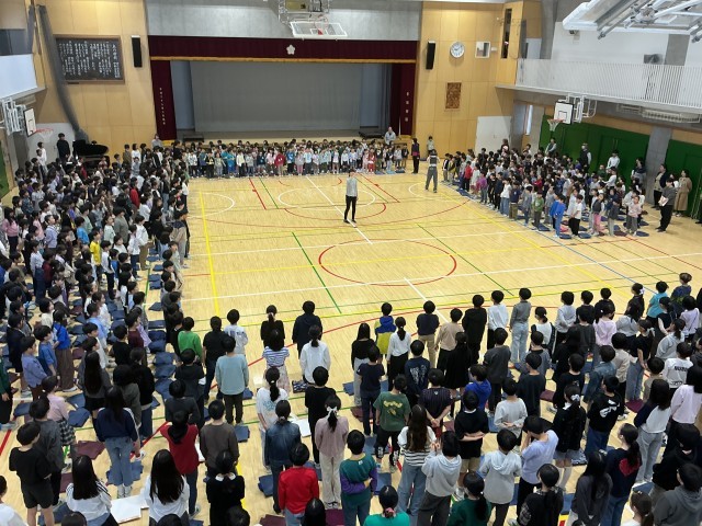 1年生が入学してから2週間が経ちました。この間に学習が始まったり、給食が始まったり、学校探検をしたりしてきました。今週の月曜日にあった全校朝会は、まだ1年生は参加していませんでした。今日の1年生を迎える会を経て本格的に多聞小学校に仲間入り、これからは朝会や集会に参加したり、休み時間に校庭で遊んだりしていきます。