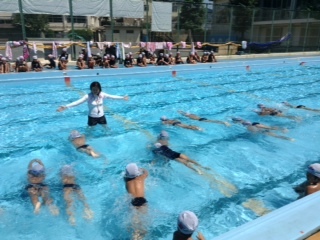 今日で夏のプールは終わりです。暑い夏のプールは最高でしたね。みんなよく通って、たくさん泳ぎました。もうすぐ学校が始まります。夜更かしはしていませんか?朝、太陽の光を浴びて目覚め、昼間は適度な運動をして早く寝る‥‥生活のリズムを整えましょう。