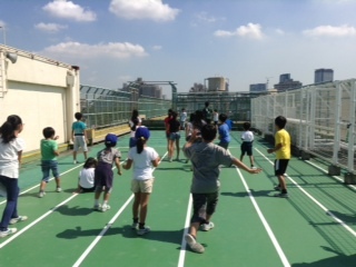 中休みにたてわり班で遊びました。校庭、教室、屋上にわかれて、仲よくゲームを楽しみました。