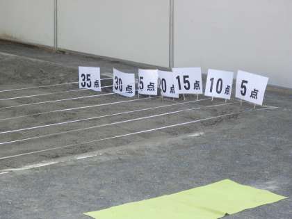 後半は、砂場に30センチ間隔でゴム紐を張って