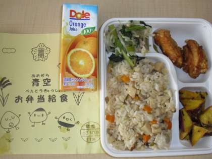 10月9日、この日の給食は、お弁当給食。