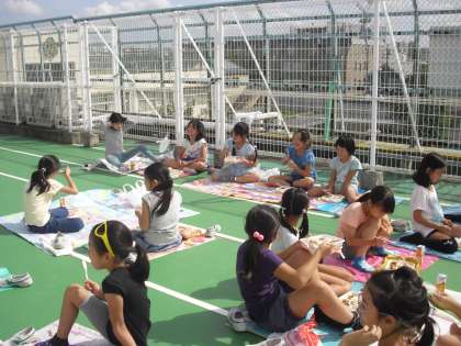 1組が屋上、2組と1年3組が体育館で食べました。