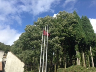 開室式。多聞小学校の校旗も掲揚されました。風にはためくと思わず拍手が沸き起こりました。