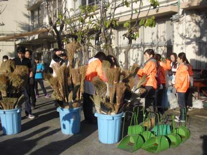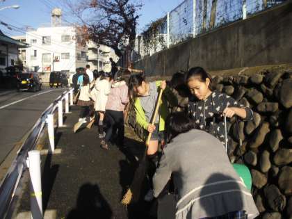 多聞小の6年生、教職員と、学校の周りを一緒に掃除しました。