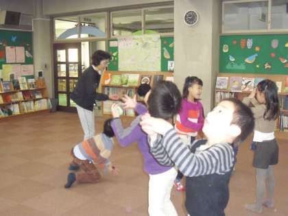 絵本の部屋では お手玉を、れいちゃん かるたを、やまちゃんに教えていただきました。