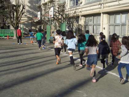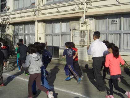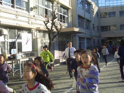 マラソン月間の取組として朝マラソンが行われています。