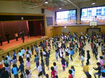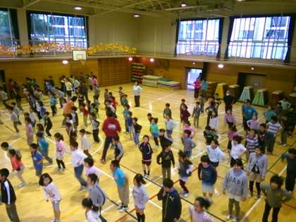 ウエンズデースポーツは、全校児童でジンギスカンを踊りました。
