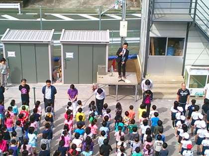 新校庭での全校朝会 公開日 2014/05/23 更新日 2014/05/23 特別活動 5月12日、できあがったばかりの新校庭で 全校朝会がありました。 放送は、ポータブルスピーカーで行います。 放送委員のみなさんは初めてなのにてきぱき 用意しました。 片付けも素早くできました。 いいね(0) 学校行事