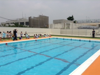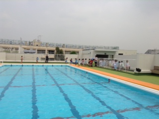 三宿小学校のプールでおよぎました。気持ちよかったです。今年の水泳を安全に楽しく行うことをみんなで確かめました。