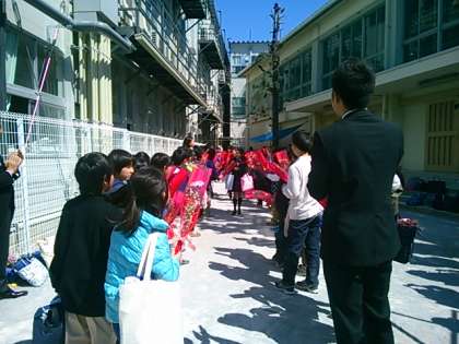 式の後、校庭で門出のつどいが
