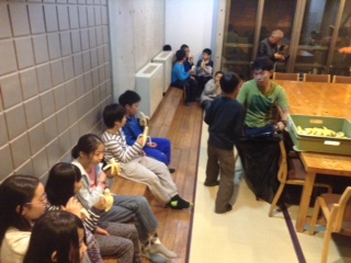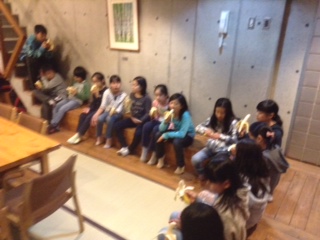 ナイトハイクに行きました。真っ暗な中で自然を耳と心で感じました。写真は暗いのでありません。帰ってきて、夜食のバナナをいただきました。