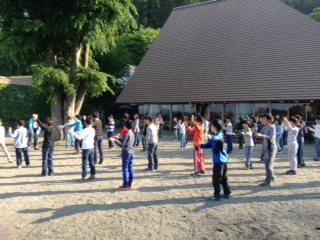 おはようございます。川場はいい天気です。朝会では、おいしい空気を胸いっぱい吸い込んで妖怪体操を踊りました。