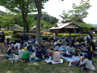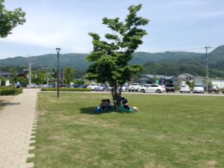 田園プラザに到着。芝生の木陰でお弁当タイムです。