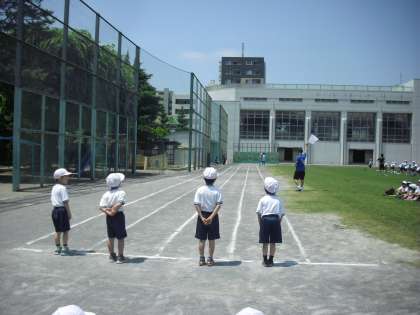 池尻小学校の校庭をお借りして、体力テストの50メートル走、ソフトボール投げ(3年生以上)の計測を行いました。