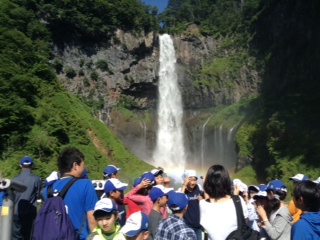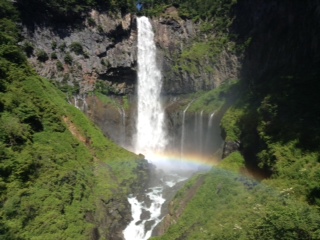 華厳の滝見学。朝イチだったので、虹が見えました。水しぶきがとても