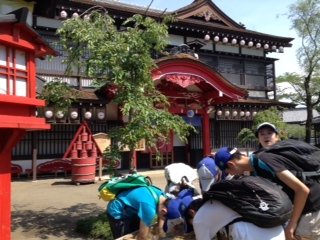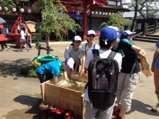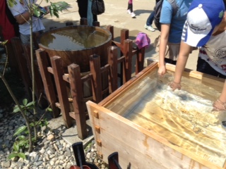 江戸村もすごい暑さです。所々に置かれた冷たい水で涼を取りながら、見て回っています。