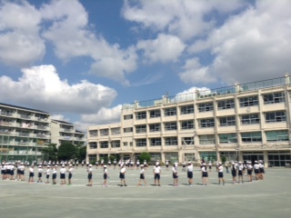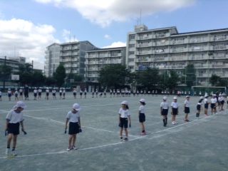 富士中学校での練習が始まりました。最初は3,4年生。広い校庭で思いっきり体を動かしました。