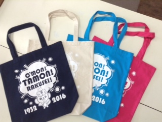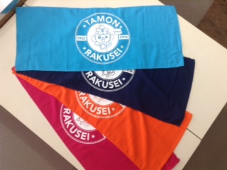 トートバッグ、タオル、巾着袋を好評発売中です。次は11月14日の学芸会のとき、受付付近で販売します。