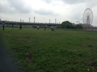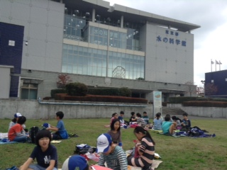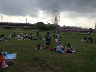 お弁当タイム。何とか天気がもちました。芝生の上でみんなで仲よくお弁当を食べました。