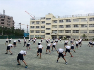 休みの日が休みの今日は、休みじゃない。ということで、4年生が太子堂中で体育です。