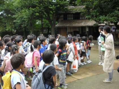 「次太夫堀公園」では、江戸時代の建物や当時使用されていた道具の説明を食い入るように真剣に話を聞いていました。