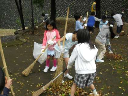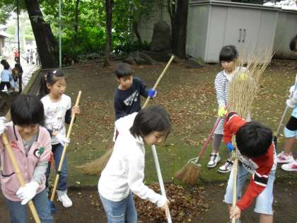 総合的な学習の時間での「町の人となかよくなろう」の学習の一環として、三宿北町会の皆様のご協力ももと、三宿神社と緑道の清掃をしています。