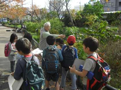 12月1日(水)、環境学習NPOの方々と北沢川緑道へ行きました。自然を観察して色々なことを発見したり、お気に入りの場所を見付けたりしました。メモしてきたことをもとに、みんなで緑道マップを作ります。