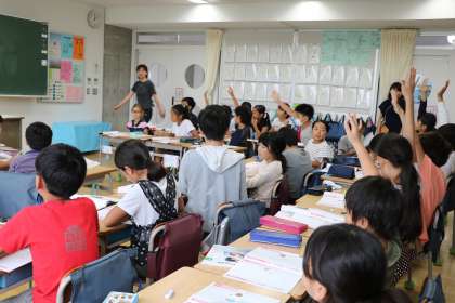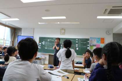 4年生の道徳の授業の様子です。今日の学習は「やりぬくために 勇気と希望、強い努力と意志」という主題で、関取の魁皇関の話「がむしゃらに」という教材でした。稽古がいやで逃げ出したこともある魁皇関。でも、あることをきっかけにがむしゃらに稽古に打ち込むようになり見事結果を残すという教材です。最後に、目標に向かってがんばっている人はみなさんの周りにいますか?という質問に、子どもたちは、「水泳でがんばっている○○君」「毎日夜遅くまで仕事をがんばっているお父さん」「家のことをなんでもやってくれるお母さん」「受験勉強をがんばるお姉さん」「いつもいろいろ考えながら勉強を教えてくれる青木先生」など答えていました。子どもたちの素直な優しい気持ちが嬉しかったです。