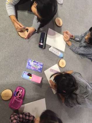 年輪を生かして、想い想いの絵やデザインが作られています。