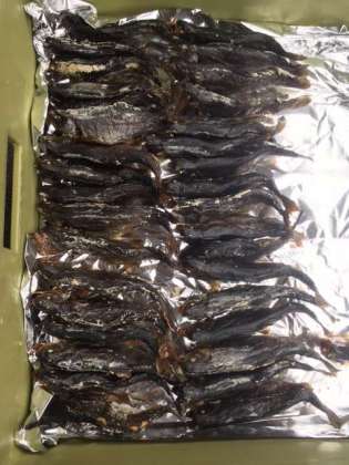 自分たちで獲った焼きたてのマスを美味しくいただいてます!
