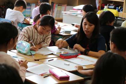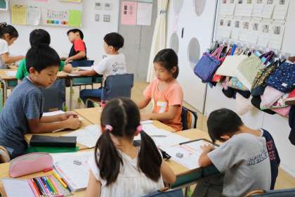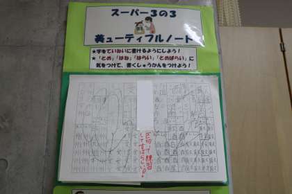 教室の中には、一人一人のがんばりを認めてもらえるコーナーがたくさんありました。クラスが一つになって、互いのことを思いやりながら学習している様子が伝わります。