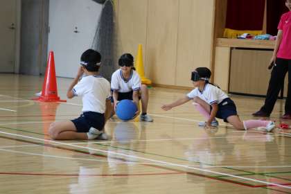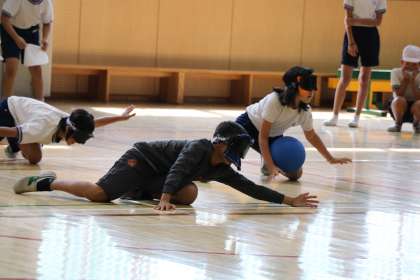今日は、4年生オリンピック・パラリンピック授業で、ゴールボール・北京パラリンピアン高田朋枝さんをお招きしました。つい先日、インドネシアジャカルタで行われたアジアパラ競技大会で優勝した、ゴールボール女子日本代表チームのお一人です。14日に帰国したばかりのところ、多聞小学校の4年生のために授業をしてくださいました。静かに競技をすることの難しさ、ボールの中の鈴の音を聞き取ることの難しさ、正しい方向にボールを投げることの難しさ、などゲームを通していろいろなことを体験できました。