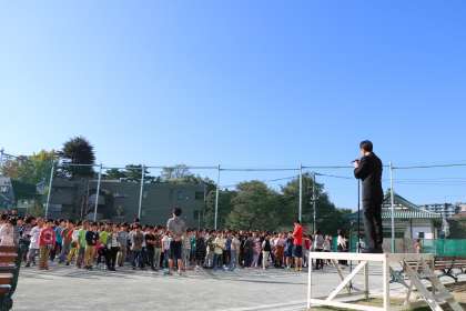 秋晴れの下での全校朝会でした。校長先生のお話の後、11月1日から世田谷区小学生海外派遣団の一員として、オーストラリアに行く5年生のあいさつがありました。世田谷区の代表として、多くのことを学び、オーストラリアの人たちと交流を深めてきてほしいです。