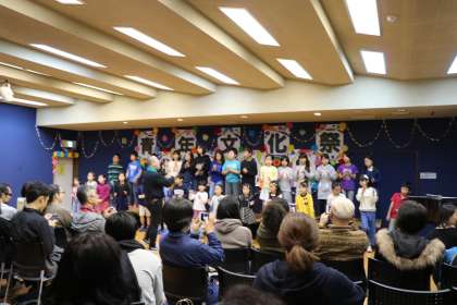11月4日池之上青少年会館で「青年文化祭」がありました。青年文化祭は今年で37回目。青少年委員さん、民生委員さん、商店街の皆様にご支援いただき、若者たちの「楽しい思い出をたくさん作ってもらいたい」との思いが込められたお祭りです。写真は、そのオープニング「ゴスペルに挑戦」という音楽室での発表の様子です。多聞小の子ども達も混ざって、すてきな歌声を響かせていました。