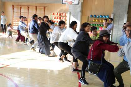 最後に保護者対抗つなひき大会でした。子どもたちのかわいい声援に、たくさんのお父さんお母さんが参加してくださいました。学級代表さんはじめ、ご参加くださった保護者の皆様、ありがとうございました。