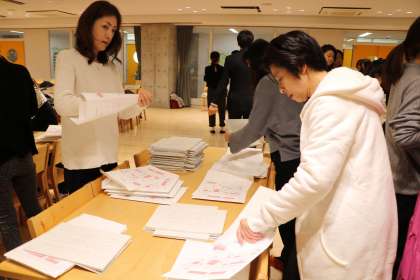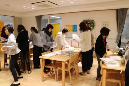 今日の、PTA運営委員会の後で、22日の研究発表会の時に配付する資料の袋づめをお手伝いいただきました。お母さんたちのていねいな作業と、手際の良さで、あっという間に終わりました。ありがとうございました。