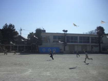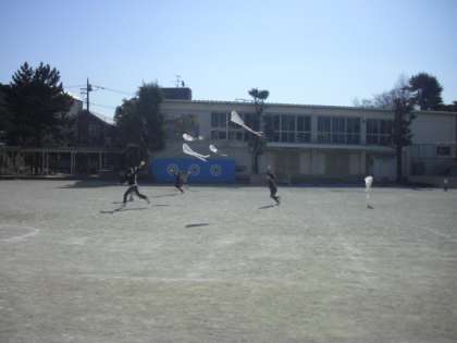 生活科「むかしあそびのめいじんになろう」で、たこを作りました。クレパスで、思い思いに、力一杯描いて、どのたこもとても素敵です。早速、たこあげをしました。風の力を感じながら、自分のたこがあがったのをどの子も喜んでいました。